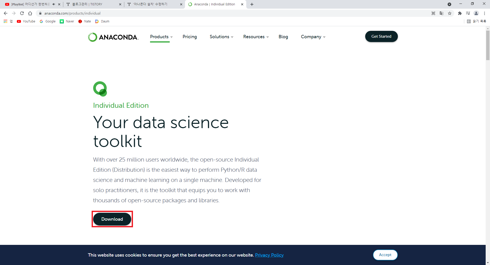 - https://www.anaconda.com/products/individual 에 접속합니다.